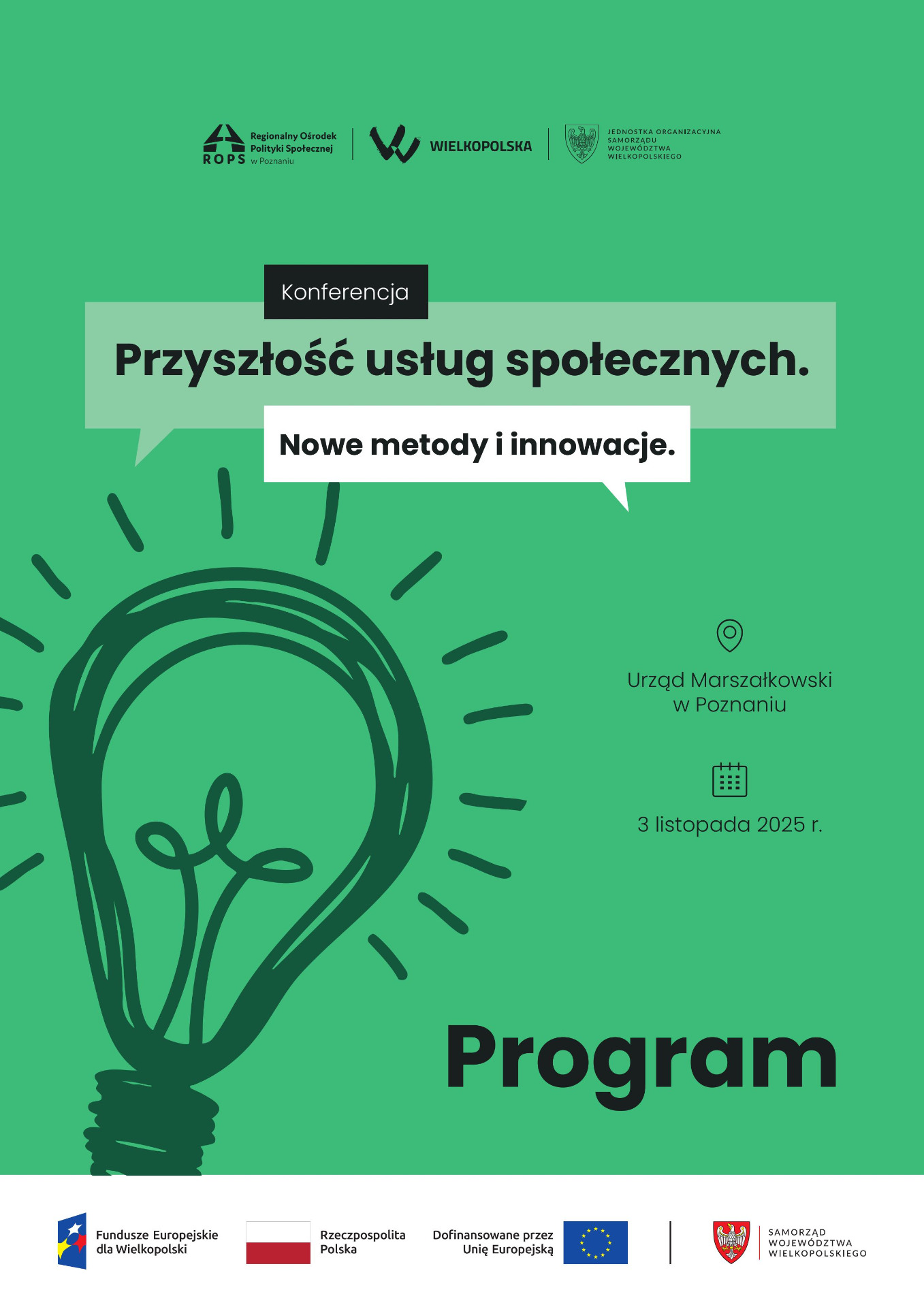 Konferencja, która odbyła się 3 listopada 2025r. (poniedziałek) w Urzędzie Marszałkowskim Województwa Wielkopolskiego miała na celu przybliżenie tematu potencjalnych kierunków rozwoju usług społecznych, z uwzględnieniem międzynarodowych inspiracji i innowacji społecznych.